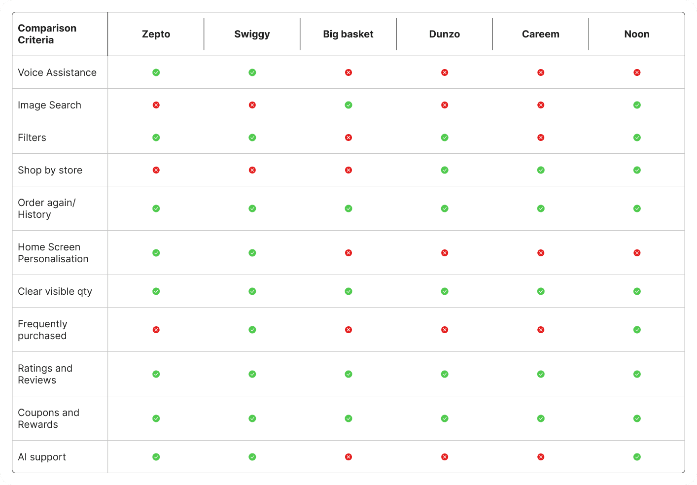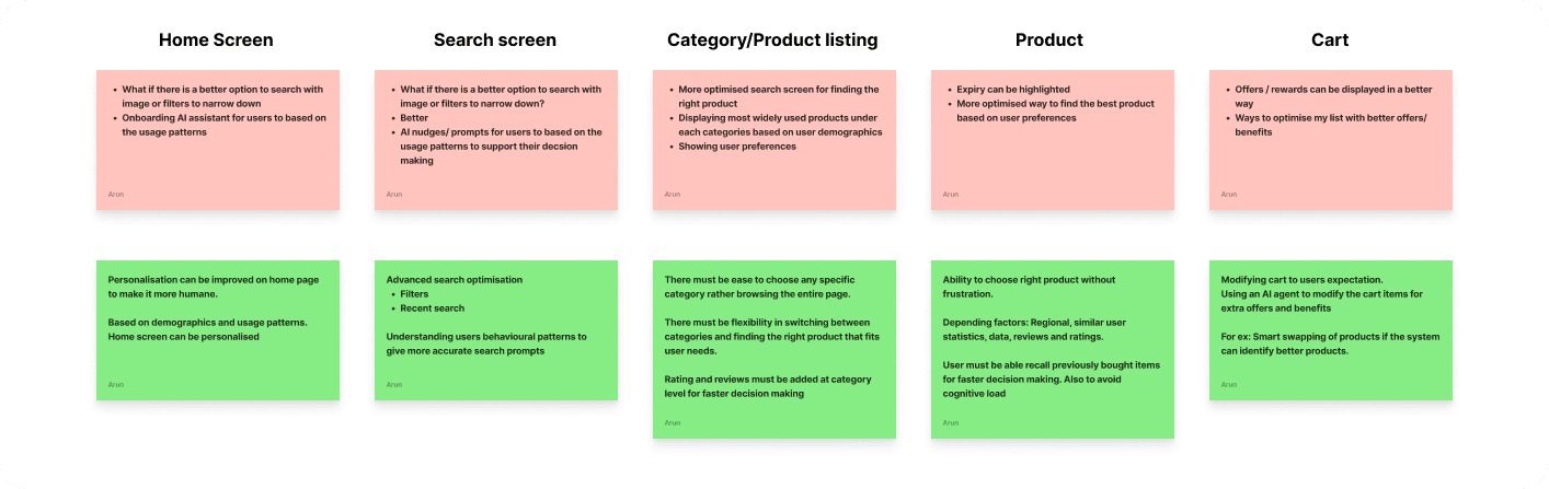 A comprehensive study of existing quick commerce platforms highlights several potential areas for enhancing the current user experience. These are areas I feel could be improved by means of an AI agent.