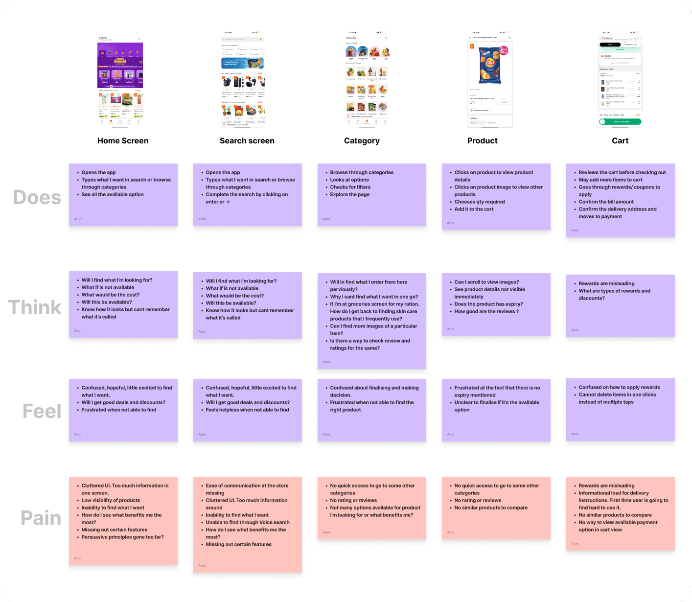 Using the collective insight gained from all market studies, I tried to bring it together into a User Journey Map. User Journey Map helped to understand the user at different levels in regards to their behaviour, thought process, feelings, and pain points.